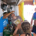 By 11:00 AM we were back on the boat, heading over to the island. Our first stop was at Isla Contoy dock. We had 1 hour free time on the island to shop, rent a golf cart, or hang out at the bars/restaurants. We skipped the golf carts and just walked around a bit, then ended up at the Isla Contoy dock bar where we watched an English fellow eat a scorpion pickled in Tequila. Good times!